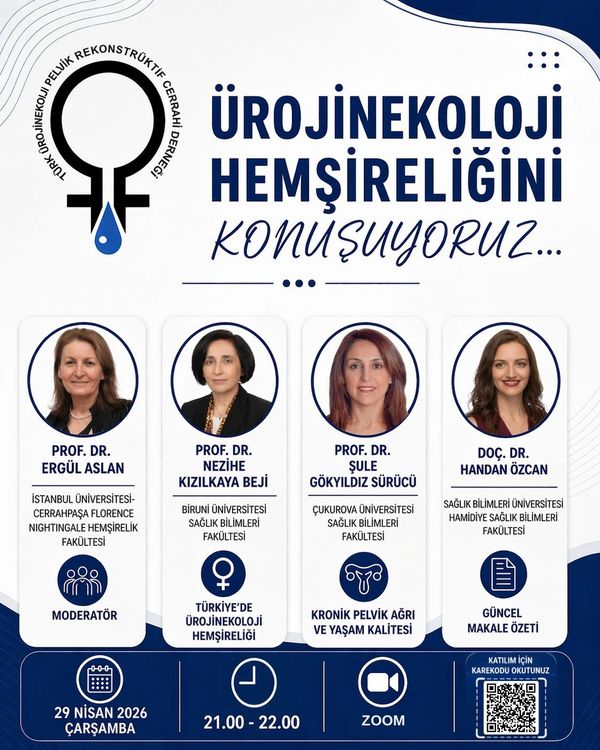 Alanında uzman akademisyenlerin katılımıyla gerçekleştirilecek programda; Türkiye’de ürojinekoloji hemşireliğinin mevcut durumu, kronik pelvik ağrı ve yaşam kalitesi ile güncel makale özetleri ele alınacaktır.